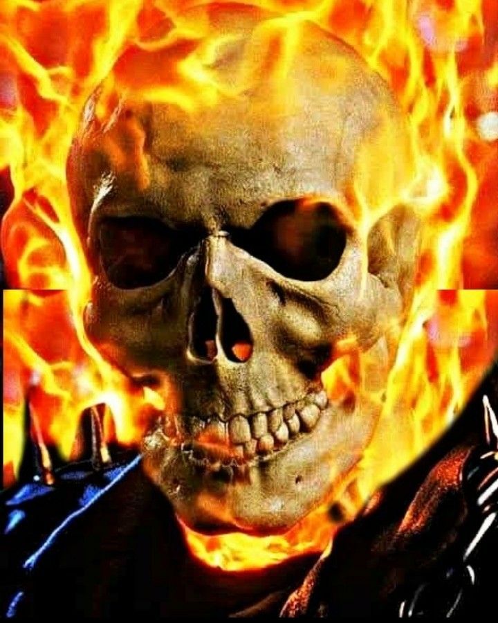 Бесшовная иллюстрация черепов в ярком пламени. PREMIUM