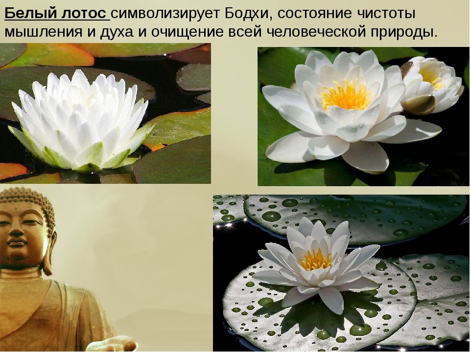 - Цветок белого лотоса символизирует мир, чистоту и спокойствие.