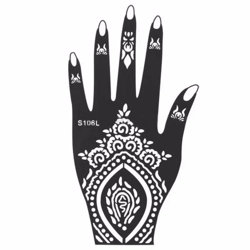 Готовые шаблоны для временных рисунков значительно облегчают процесс и позволяют создавать потрясающие шедевры на своем теле, руке в домашних условиях. Освоить технику их использования может каждый желающий. Продаются в специализированных магазинах индийских товаров вместе с готовой пастой и порошком для менди.