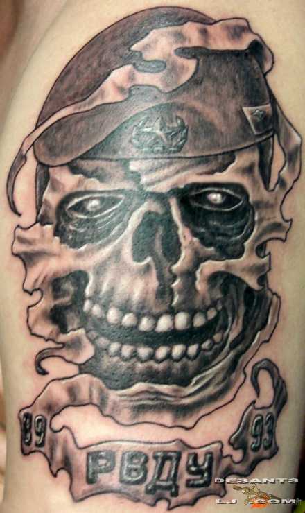 Некоторые подразделения российских вооруженных сил, такие как войска специального назначения, воздушно-десантные войска, морская пехота, сегодня иногда используют символ черепа в берете своих на жетонах и тату.