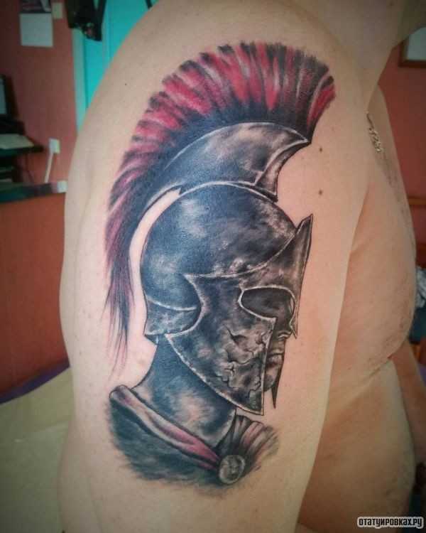 Тату в виде шлема спартанского воина указывает на то, что обладатель желает иметь такую же силу тела и духа, как солдат Древней Спарты. Ведь, войско спартанцев абсолютно вся состояла из стойких как физически, так и морально воинов.