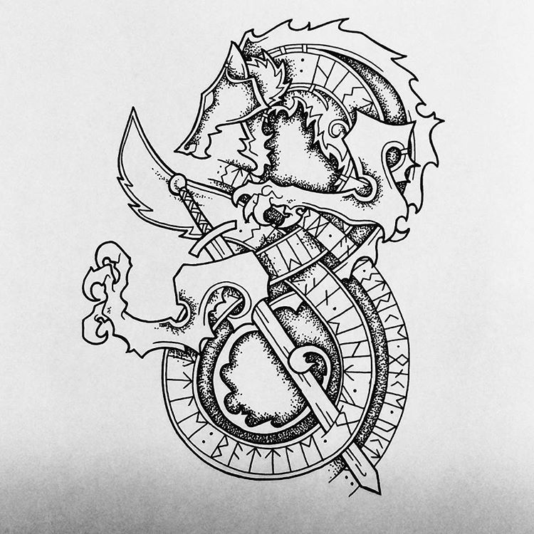Волк, наиболее часто ассоциирующийся с скандинавской татуировкой, происходит от гигантского волка Фенрира.