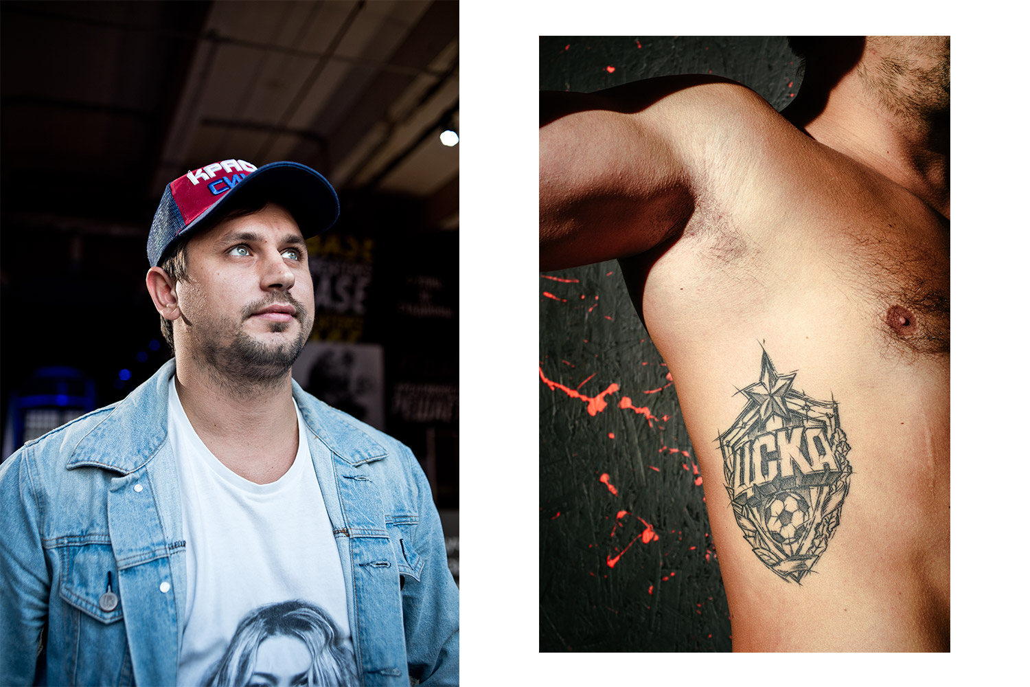 В детстве я тренировался в спортшколе ЦСКА — можно сказать, что у меня вся жизнь связана с этим клубом. Желание набить татуировку на футбольную тематику появилось у меня давно, лет десять назад, но я не знал, как и у кого ее сделать. Дело сдвинулось после того, как я нашел мастера. Целенаправленно искал человека, который работает в графике, потому что цветные татуировки не люблю. Поэтому эмблема клуба выполнена в стиле, несколько отличающемся от оригинальной картинки.
