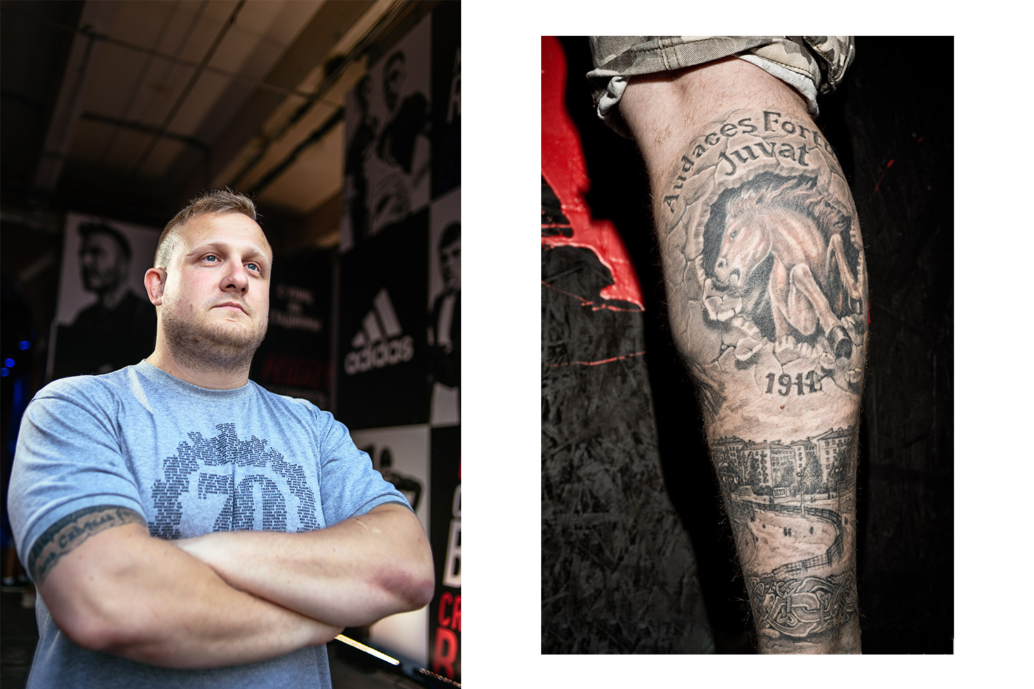 Первую татуировку, связанную с футболом, я решил набить года три назад. Я познакомился тогда с ребятами, которые активно посещали футбольные матчи, были «голосом трибун», и съездил с ними на свой первый выездной матч, ЦСКА — «Эйндховен», который проходил в Голландии. И после возвращения у меня, по сути, изменилось мировоззрение, я пересмотрел все жизненные ценности. Это все легло в основу идеи для татуировки. Все знакомые отговаривали меня, говорили, что это навсегда, но я все равно решил делать.