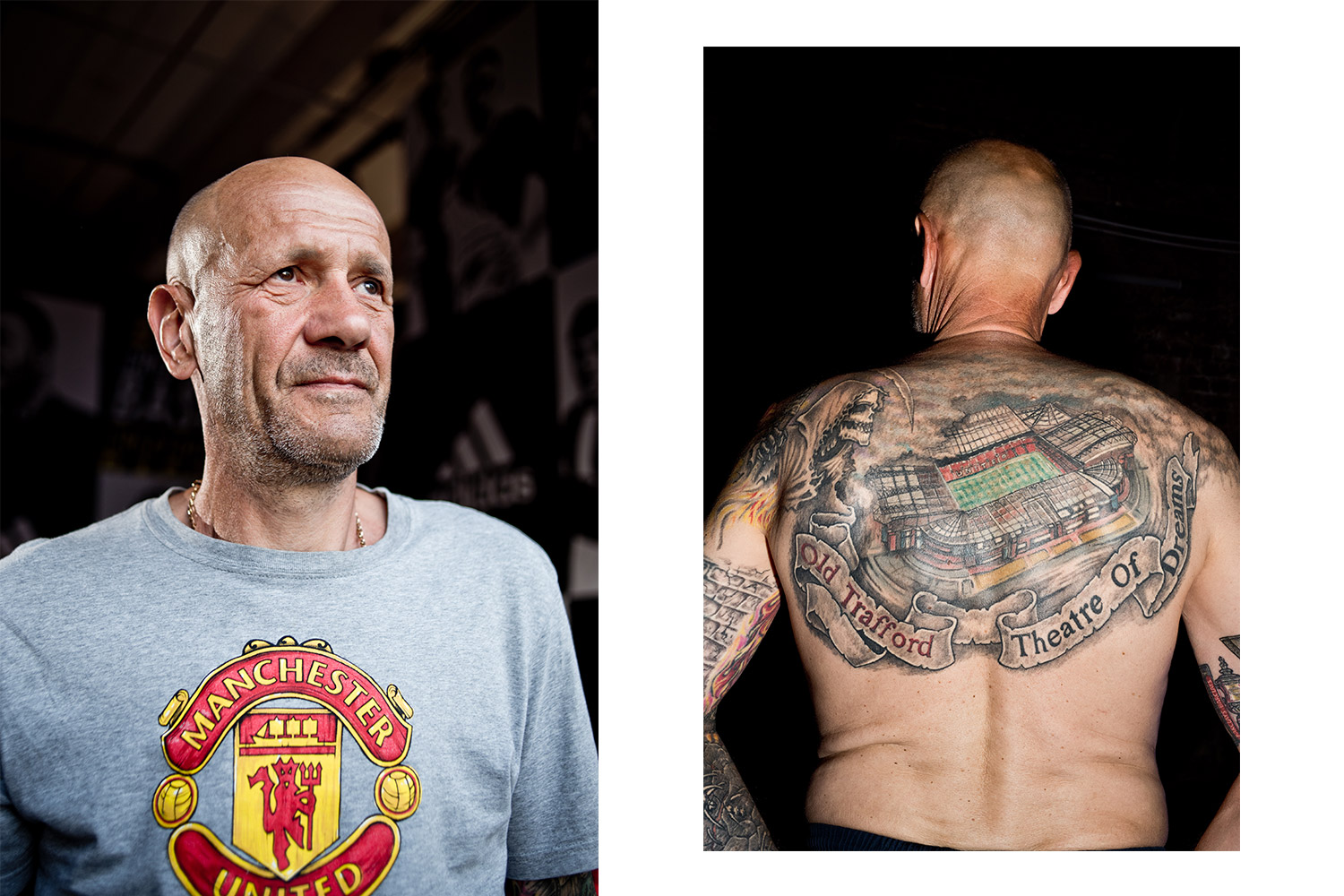 Первой моей футбольной татуировкой как раз и был этот чертик. Сделал я его давно на плече, в начале 1990-х. Били по картинке с футбольной майки, которую мне подарили друзья. Тогда ни тату-мастеров, ни доступа к изображениям, как сейчас, не было, поэтому потом пришлось ее немного доделывать. Это уже с Димой (Дмитрий Броня. — Прим. ред.) делали. Мы познакомились с ним пятнадцать лет назад, и с тех пор я только у него и забиваюсь. У него я делал и кубок на руке, и эмблему клуба на груди, и «Олд Траффорд» на спине. Идея последнего была совместной: я давно хотел набить стадион, а Дима нашел картинку, добавил какие-то детали. Сделали довольно быстро, сеанса за три.