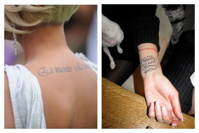 Так, на теле ведущей уже есть надпись на латинском языке «Et mente et anima», перевод которой означает: «И душой и телом». На запястье – тату со словами «Magna res est amor» («Великое дело – любовь»). Интересно, что на ее ноге ранее была набита дата рождения ее сына Жана и тоже римскими цифрами.